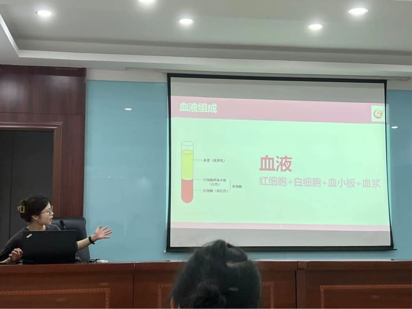 本次科普由團隊隊員任佳怡結合科普視頻,從血液的基本知識、兒童常見的血液疾病和無償獻血的意義三個方面,帶領孩子們一起探索人體血液的奧秘。通過此次科普活動,使孩子們了解血液的組成成分,知道血液對人體的重要意義,并懂得無償獻血的重要作用。