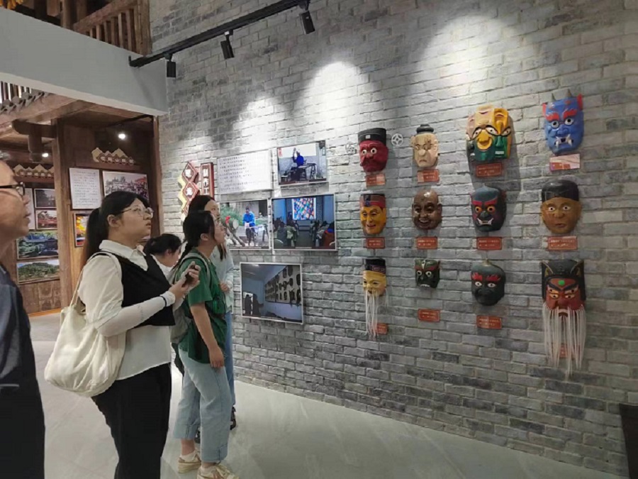 展示館內,恩施儺戲、儺面具等富有恩施特色的非物質文化遺產展現在實踐團成員的眼前,甘老師向他們一一介紹了它們的歷史、特點和傳承情況。實踐團成員對恩施儺戲的表演形式和儺面具的制作工藝表示了濃厚的興趣,并與展示館工作人員進行了互動交流。
