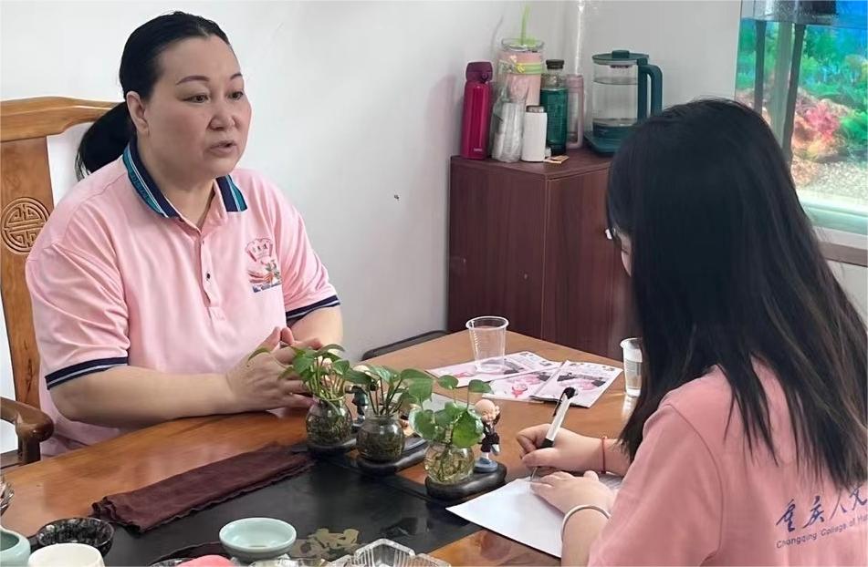 為了深入挖掘、宣傳畬藥非遺文化,助力畬藥錘板拍打治療法傳承,重慶人文科技學(xué)院“榕葉滿庭”非遺文化傳承與創(chuàng)新實(shí)踐團(tuán)隊(duì)于參觀畬藥館結(jié)束后對畬藥錘板拍打療法代表性傳承人雷月蓮老師和尤昌佃老師采訪進(jìn)一步了解其獨(dú)有特色、現(xiàn)狀并親身體驗(yàn)畬藥錘板拍打療法的魅力。