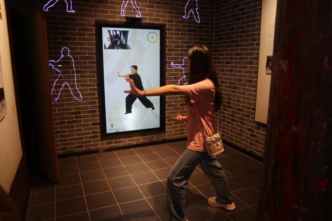 詠春拳是是中國武學歷史上少有的專為女性所創的拳法之一,故此拳又有“女人拳”之稱。除了觀賞,實踐團成員親身沉浸式體驗詠春拳,在動靜結合,視聽融合,交互沉浸的非遺空間里,成員們體會到了非遺打拳帶來的樂趣,也對非遺詠春拳產生了濃厚的興趣。