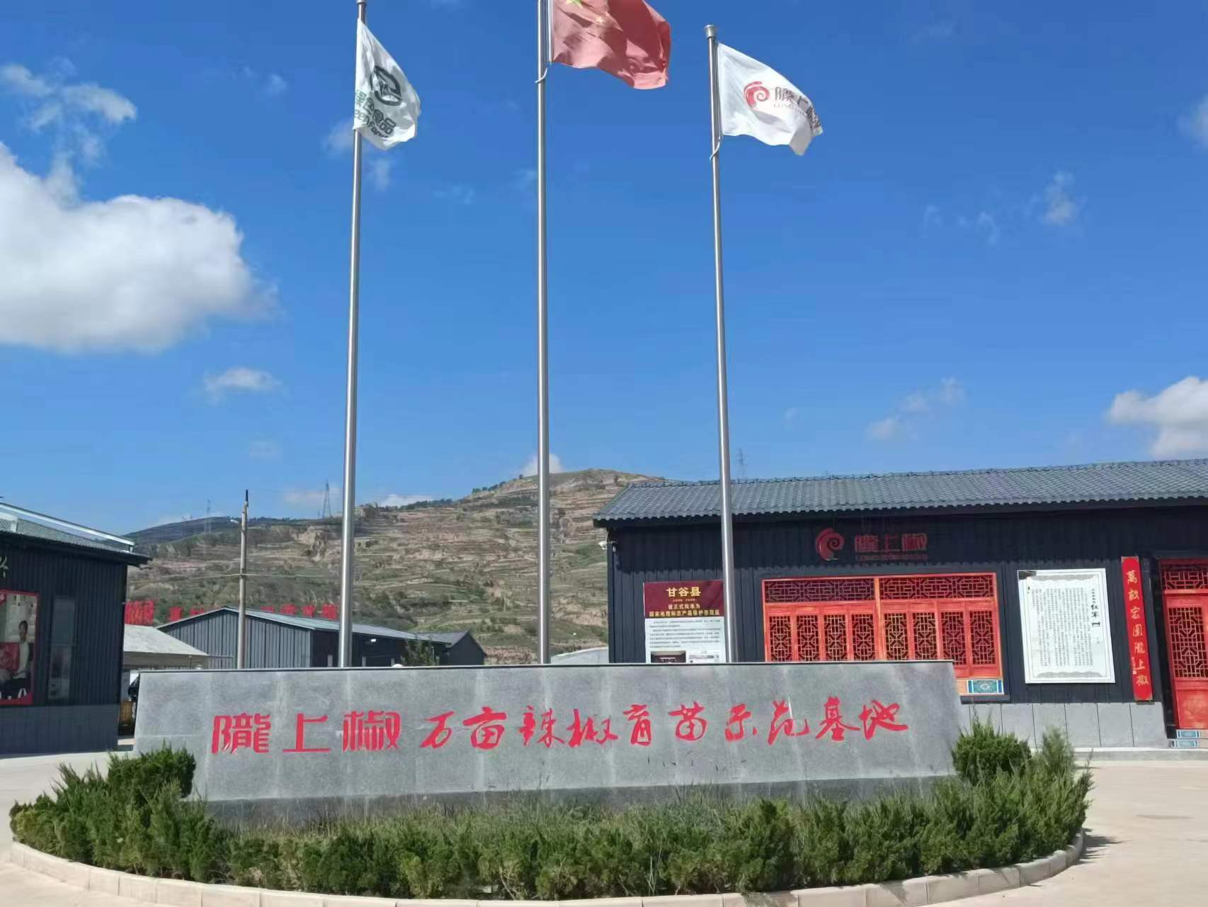 走進基地,迎面而來的就是隴上椒辣椒博物館;館一角的玻璃車間內,工人們正在用石磨手工碾制辣椒面;大廳墻面上,一幅由本地畫家繪制的淡墨山水畫講述了甘谷從明代到如今的辣椒種植歷史;大廳中央的沙盤里,甘谷隴上椒瑞林農業農民專業合作社的萬畝辣椒種植基地模型栩栩如生。
