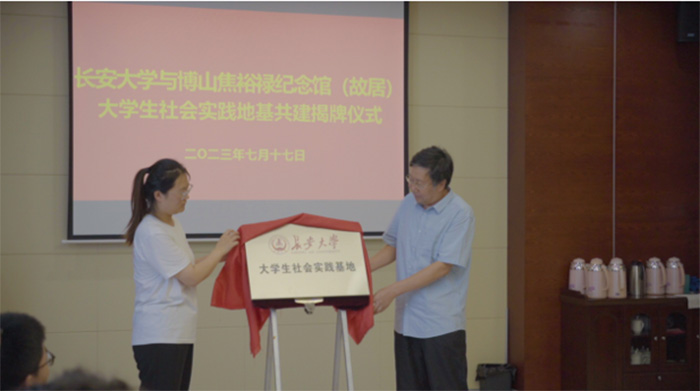 圖為長安大學(xué)赴山東淄博“探數(shù)字賦能,助鄉(xiāng)村振興”暑期社會(huì)實(shí)踐隊(duì)與焦裕祿紀(jì)念館社會(huì)實(shí)踐共建授牌儀式