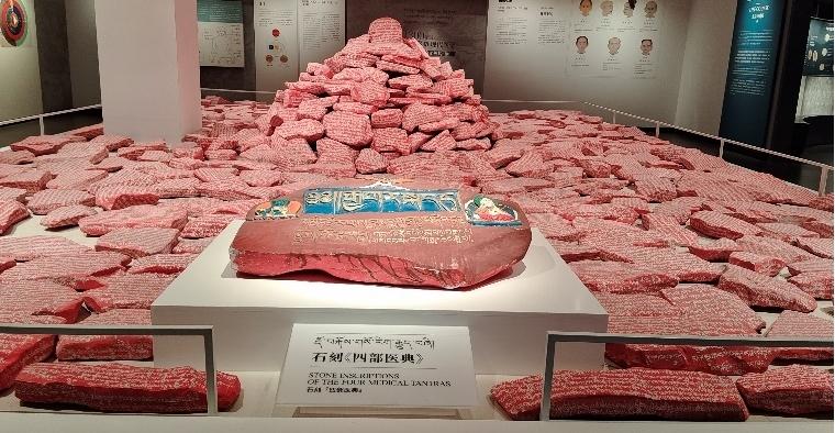 走進大廳左手邊就是我們的“古籍文獻展廳”, 古籍文獻展廳陳列了藏醫藥文獻中最具代表性的1000多函典籍,還展出了300多部現當代藏醫藥學書籍和古籍印版。通過古籍印板,《四部醫典》、《月王藥診》、《祖先口述》、《四部醫典藍琉璃》、《晶珠本草》等著名典籍,顯示了作為世界四大傳統醫學之一的藏醫藥學浩瀚的典籍和博大精深、體系完整的藏醫藥學理論。數百部現當代藏醫藥學書籍展示了古老的藏醫藥學理論研究后繼有人。