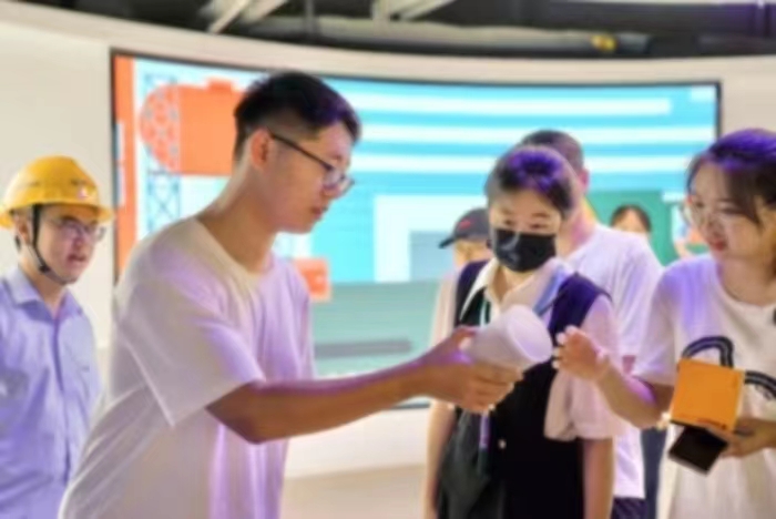 圖 項(xiàng)目負(fù)責(zé)人向?qū)嵺`隊(duì)隊(duì)員介紹工程應(yīng)用案例