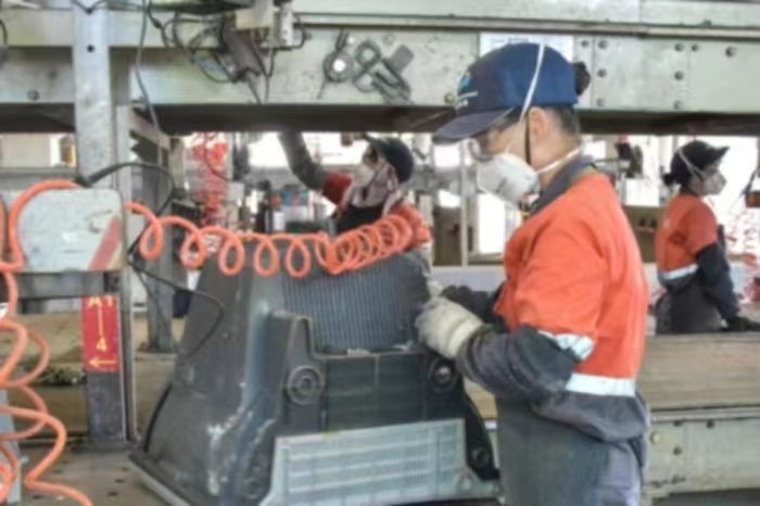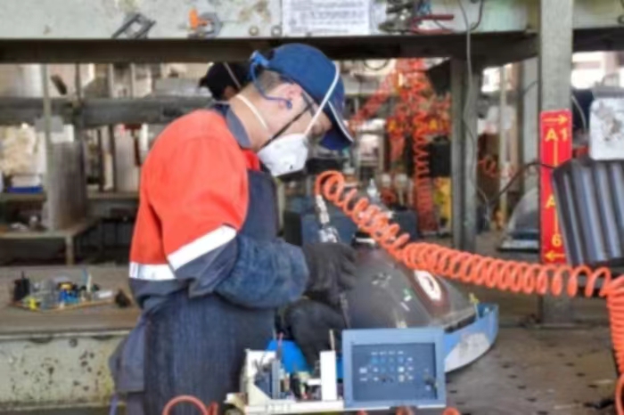 在做好安全防護(hù)后,實(shí)踐隊(duì)隊(duì)員跟隨講解員來到處理廠的工作車間,講解員介紹道,公司的流水線生產(chǎn)嚴(yán)格遵循各項(xiàng)規(guī)定,以綠色產(chǎn)業(yè)和低碳技術(shù)為基礎(chǔ)進(jìn)行運(yùn)作,且嚴(yán)格把控水、電和煤的使用,高效回收廢棄電器電子產(chǎn)品,提高廢棄物綜合利用率。