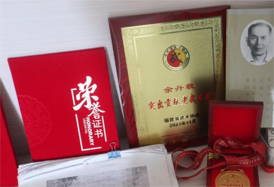圖為 余丹秋疫情期間首創“空中武術館”所獲榮譽“突出貢獻老藝術家”