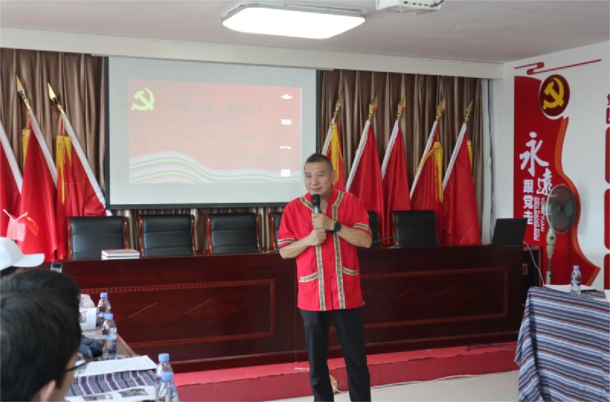 圖為 村委書記介紹庭洋扳村與畬族山歌