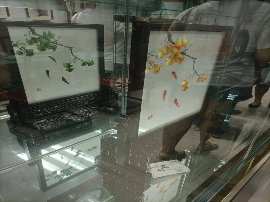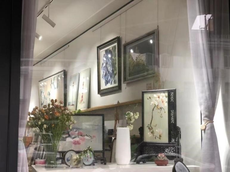 圖為店內(nèi)琳瑯滿目的蘇繡作品