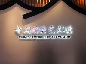 圖為典雅的藝術(shù)館內(nèi)部及精致的繡品