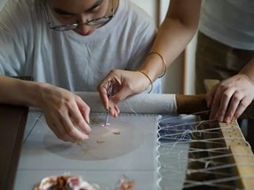 圖為實(shí)踐團(tuán)成員們親自體驗(yàn)蘇繡。