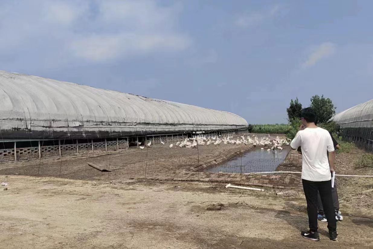 跟隨金太陽農場內大鵝養殖場王經理的腳步,實踐隊來到養殖大棚實地考察養殖場內糞污處理方式,王經理介紹道:“養殖場包括4個養殖大棚,有近8000只鵝,每只大鵝的成長期為75天-100天。養殖場內大鵝排放的糞污會在每1-2天由專門的清分糞車清理一次,運至堆肥室內發酵近2個月后,再運至養殖場周圍的農田作有機肥使用。”
