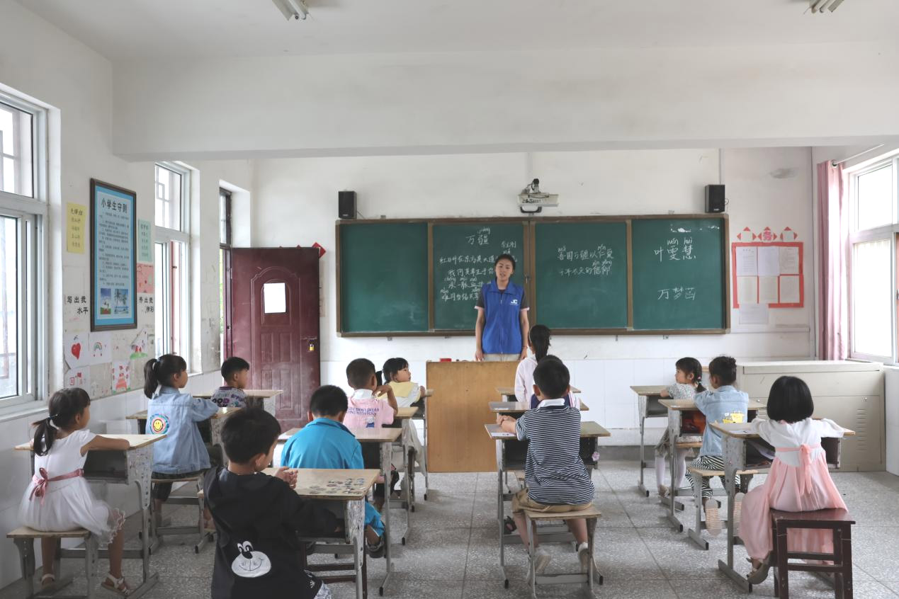 (圖為“金種子”社會實踐團隊成員葉雯慧上音樂課。陳靈琪 攝。)