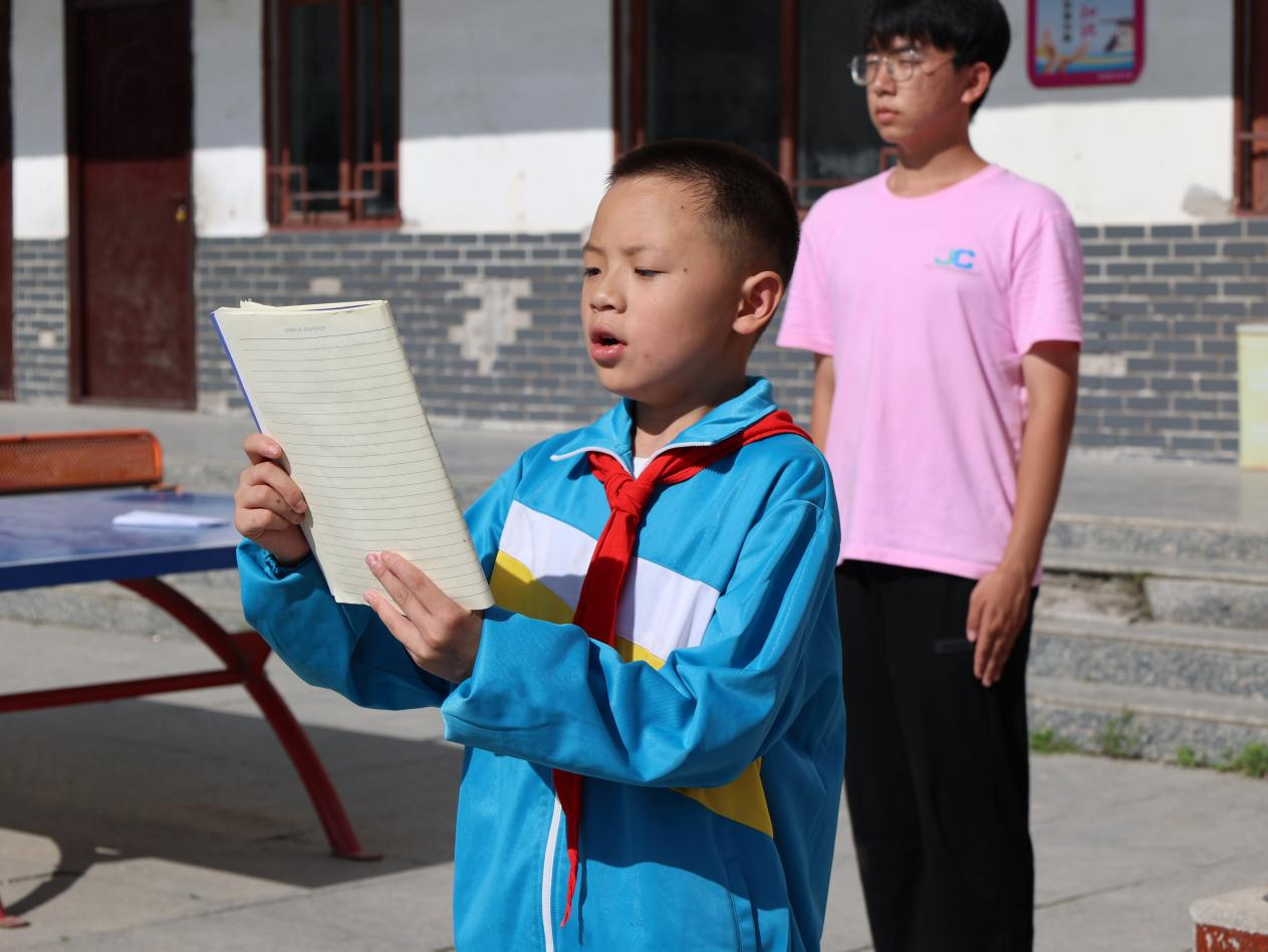 接下來,牛欒村小學的優秀學生代表張朔豪同學代表牛欒村全體同學進行了國旗下致辭。他從黨和國家的光輝歷程和偉大成就講起,回顧了偉大的抗戰歲月,表達了對未來美好生活的憧憬,用飽含深情的語言表達了對祖國的無限贊美和憧憬。同時,他還說到,作為新時代的好少年,他們應不負韶華,砥礪前行。