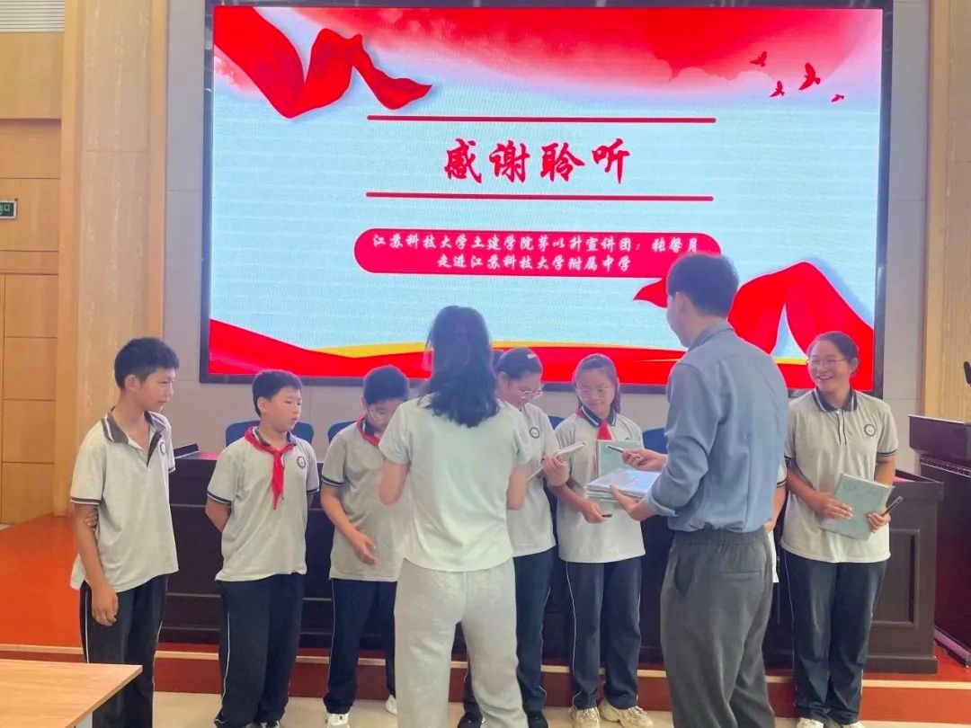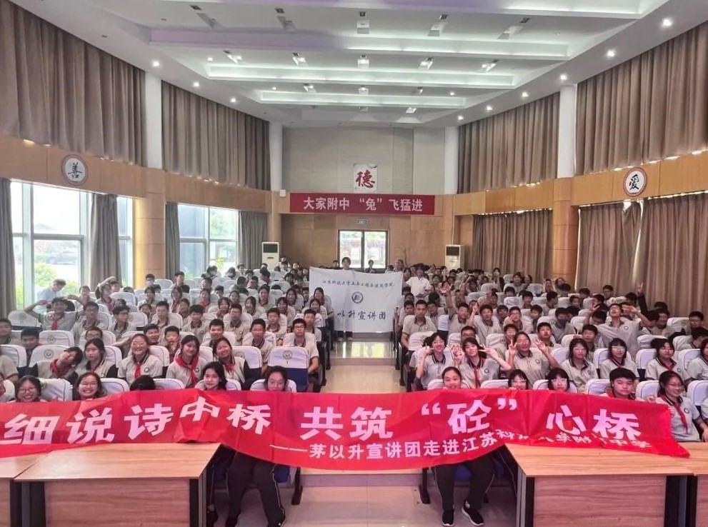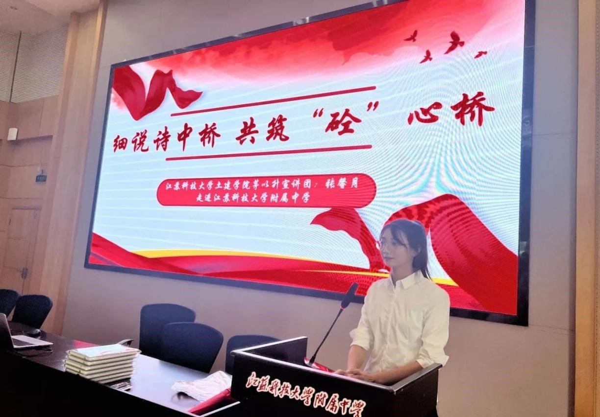 大學生校園網鎮江6月29日電(通訊員 周珂)為鼓舞青年學子,以有志之青春奔赴人生征途,勇擔時代重任,奉獻青春力量。近日,江蘇科技大學土建學院茅以升暑期社會實踐團隊走進江蘇科技大學附屬中學,以“細說詩中橋,共筑‘砼’心橋”為主題開展茅以升精神宣講活動,進一步賡續茅老精神。