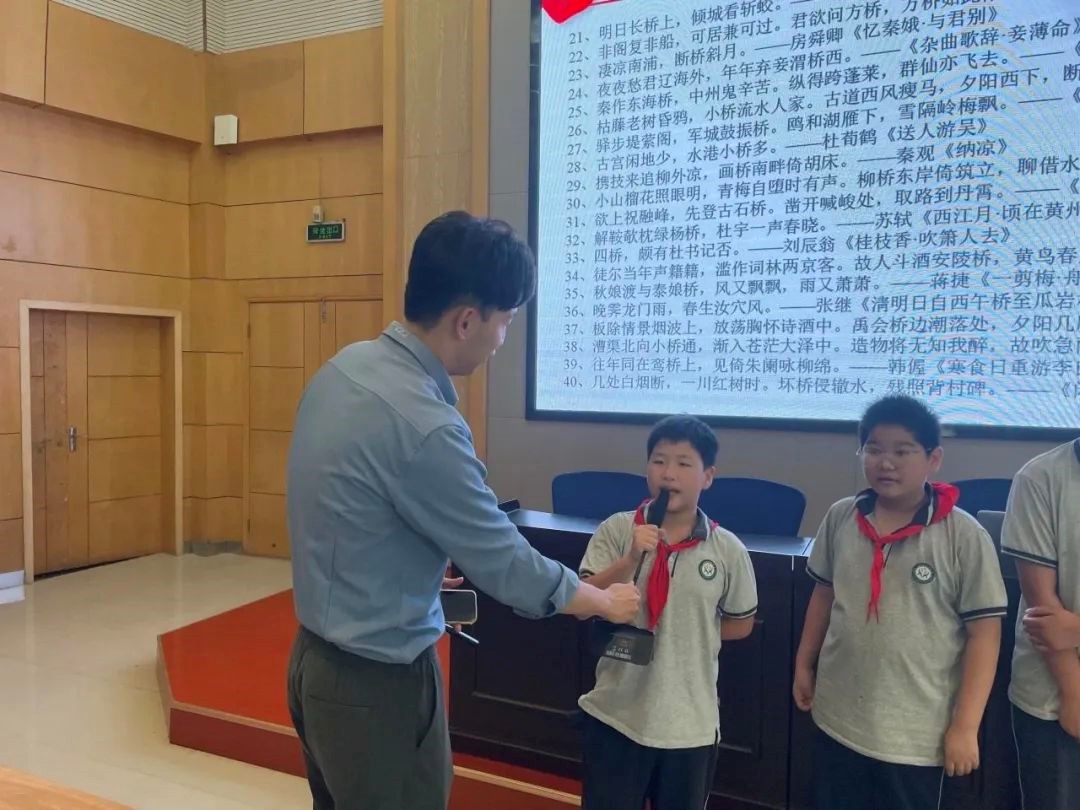 “細說詩中橋”趣味接龍活動結束后,茅以升暑期社會實踐成員為七位優秀學生頒發獎品。進一步推進科學家精神文化引領、青少年價值觀形成塑造。引領青少年學生學習繼承茅以升“愛國、奉獻、奮斗、科學”精神,激發青少年學子“強國復興有我”的使命擔當意識。