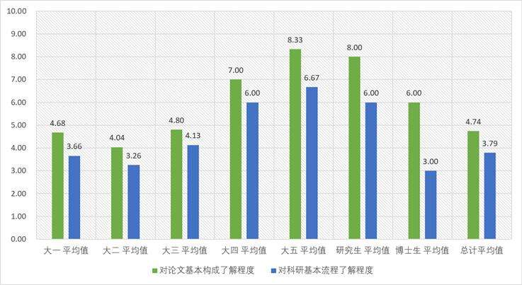 中醫藥專業各年級學生對論文及科研的了解程度
