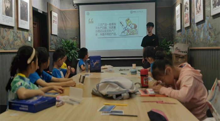 第四次團隊來到了南京市規劃展覽館,這是規模最大也是最正式的一次宣講,面對臺下一百多位小朋友,團隊中的宣講成員鄭翼在臺上也是略顯緊張。這一批的小朋友擁有最多的食品相關知識積累,并且經常關注食品相關的新聞。在宣講過程中有小朋友提出了當下最熱門的,有關代糖安全性的討論,我們也對食品包裝安全性的問題進行了熱烈的討論,在一次次提問與解答中歡快地度過了一個多小時的宣講時間。