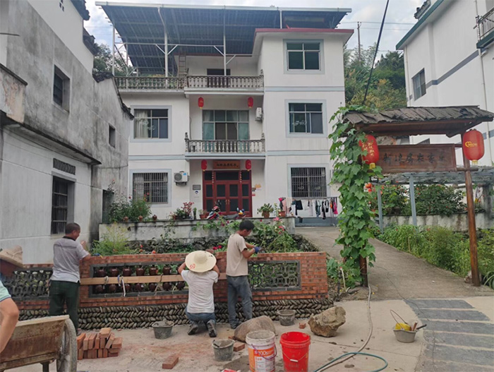 在對當地景觀的微改造過程中,為了能夠更好的讓鄉村留底蘊見品質,實踐小隊始終堅持微改造、精提升,力求最小干預、最好效果,著力保護徽州文脈、保留村莊肌理、保住鄉土特色。堅持花小錢、辦大事,不搞貪大求洋、大拆大建,把徽州傳統文化、鄉土特色、紅色文化通過徽匠精湛的技藝悄然融入微景觀打造中。通過對村莊“金邊銀角地”、房前屋后閑置地等零星地塊,以小菜園、小茶園、小花園、小游園、小藥園等模式改造,培育美麗庭院、一米菜園,全域推進綠化美化、古建保護等“微改造”,讓老房子煥發出青春、舊庭院透出新景致、古街巷浸染文化底蘊。