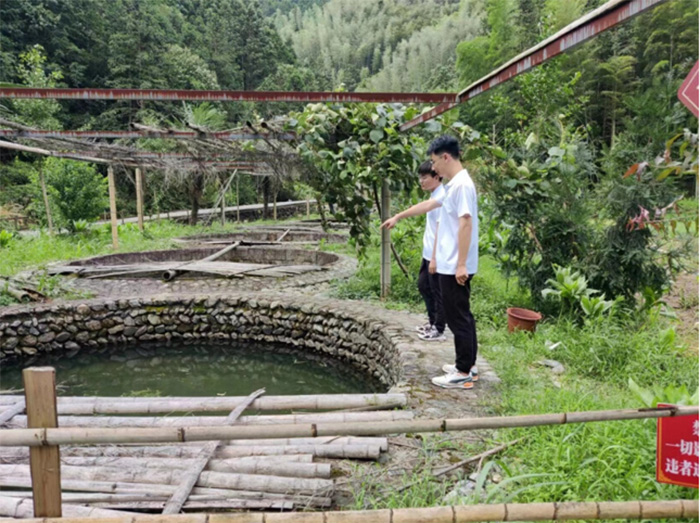 7月7日上午,實踐隊員沿著山路參觀由政府財政投資建造清水魚養殖,該模式通過水管將山泉水引入由青石建造的魚池內,與旁邊的茶園構成水循環,通過網絡,小組成員了解到該模式下的魚:養殖溫度較低,飼料天然有機,生長周期長,魚體含肉率高,魚肉中的蛋白質等營養物質含量高,魚肉鮮味足,口感極佳,被譽為“水產瑰寶”“健康珍品”;下午,小組成員再次出發,重走先輩路,沿著徽州紅旗渠登上山頂,該渠由山石構建,沿山體蜿蜒而上,渠體與山之間構成,在過去很多年中為當地民眾解決了用水問題,走過徽州紅旗渠小組成員深刻的領會先輩們“自力更生、艱苦創業、團結協作、無私奉獻”的紅旗渠精神。回到住宿地后,實踐隊員對本日調查做出總結,討論改造方案,并將方案提交至村委,聽取其意見。