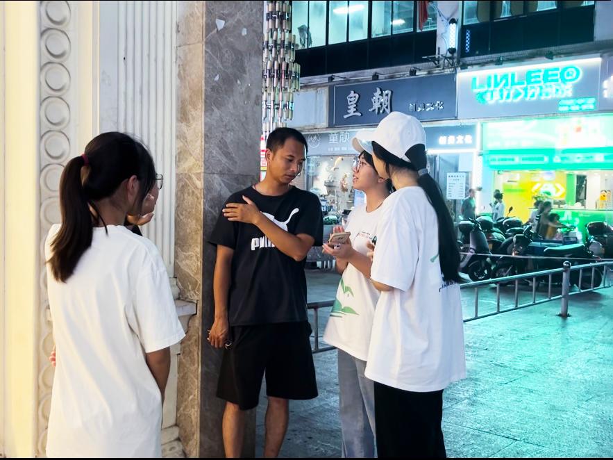 圖為團隊成員街頭采訪路人。通訊員 黃佩柔 供圖