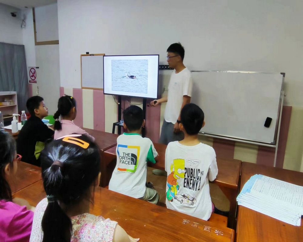 為了推動(dòng)長(zhǎng)江江豚保護(hù)工作,團(tuán)隊(duì)成員走進(jìn)江蘇省常州市新北區(qū)香山社區(qū)、安徽省阜陽(yáng)市潁州區(qū)西湖景區(qū)社區(qū)、河北省邢臺(tái)市威縣賀釗鎮(zhèn)等地,開(kāi)展“保護(hù)江豚”為主題的科普宣講會(huì),在課堂上,團(tuán)隊(duì)成員通過(guò)講解長(zhǎng)江江豚基本知識(shí)、觀看視頻等方式,小朋友們認(rèn)識(shí)到長(zhǎng)江江豚目前是極危物種,激發(fā)小朋友們對(duì)江豚保護(hù)的熱情。