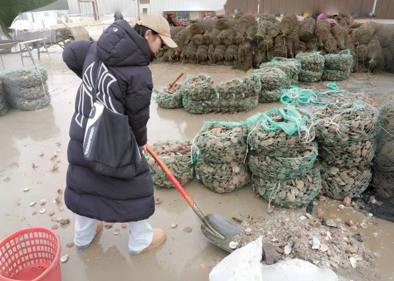 走入基層,親身體會漁民勞作。任家臺是一座靠海的小漁村,一年四季風都很大,尤其是冬季,更是寒風凜冽。無情的季風向這座漁村里的每個人張牙舞爪,而他們毫不理會,只是將自己整個人浸在風中,哪怕發絲被吹的凌亂,手指皸裂泛紅,他們仍來來回回在漁船上穿梭,連上甚至洋溢著幸福的微笑。他們的堅持與毅力深深地打動了我。或許無數個日日夜夜,或烈日高照,或寒風肆虐,他們只是在漁船上揮灑著汗水,期盼著賣掉這些海產換得來日好生活。他們臉上的笑容深深震撼了我,我突然意識到正是他們樂觀向上的心態與勤懇的辛勤,才使得這座小漁村不斷煥發出新的活力。生活并不容易,而他們只是迎難而上,這種態度值得我們所有人學習!隨后,在當地漁民的邀請下,我們也舉起了鐵锨,清理那些剛從養殖場運輸過來的扇貝。這并不是一個輕松的活計,但他們卻日復一日、年復一年的重復這些辛苦的勞作。我意識到,人只有腳踏實地,埋頭苦干,才能收獲豐盈的果實。我也感慨于這些漁民的齊心協力:這群靠海吃飯的勞動人民每個人都出一份力,在家鄉發展的時候獻一份力。