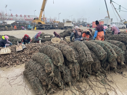 圖為碼頭收獲水產品的村民。中國青年網通訊員 唐樂宗 供圖