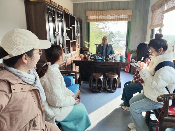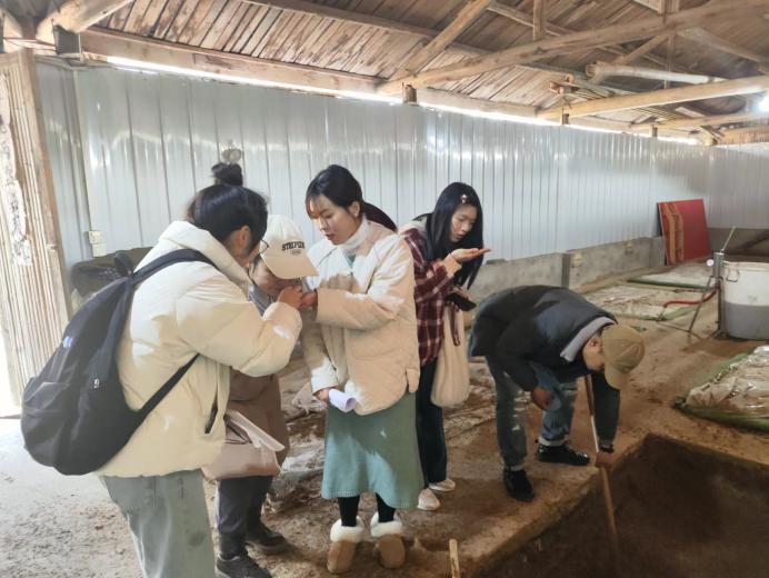 1月17日,豐收年年隊來到了位于李樓鄉賈庵村的九溝沿贏酒坊,該酒坊是一家集酒坊、民宿和各種娛樂設施為一體的農家樂,風景優美,是蚌埠市鄉村休閑旅游示范點。在這里,團隊成員不僅感受到了獨具特色的傳統白酒釀造工藝,還采訪到了酒坊的創始人劉家林先生。團隊成員首先在劉先生的帶領下參觀酒坊,聽取釀酒相關知識的講解,并體驗了釀酒過程。隨后,劉先生向隊員們分享了自己的創業經歷以及諸多感悟。劉先生稱,他返鄉創業建立酒坊至今已有七年,從投資建設、招募員工、大力宣傳到開放市場,又經歷了前幾年的特殊時期,酒坊一路跌跌撞撞不斷發展壯大。但是農家樂的經營目前正面臨著難題,如建設成本壓力、宣傳效果不佳、交通不便利等。沉淀了七年,劉先生依然不忘初心,堅持守正創新,成為返鄉創業成功的典范,向隊員們展示了“新農人”敢于創新拼搏的奮斗精神。同時,農家樂給當地旅游業發展提供了新思路,對帶動當地旅游經濟發展起到重要作用。