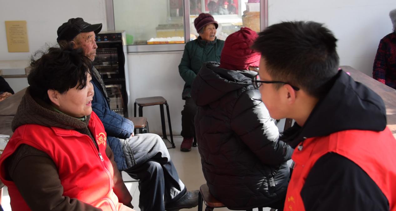 活動伊始,隊員們對食堂負責人進行采訪,了解食堂在創立和運營方面的情況。在愛心食堂,隊員們一邊和他們嘮著家常,歡聲笑語不斷,一邊按照老人的需求為他們制作午飯和副食品,修剪發型。此外,隊員們走進老人們的活動區域,幫助老人們擦桌子、掃地拖地、整理物品。活動期間,隊員們一起走訪了村子的困難老人,并為這些家庭送上雞蛋、花生油、包子等物資,向老人們講解了冬天居家在取暖和飲食要注意的事項,倡導老人合理飲食,放松心情,適當進行戶外鍛煉。隊員們的熱情服務,讓老人們樂得合不攏嘴,對實踐隊員連聲道謝。