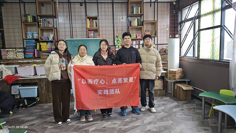 Figure 4圖為實(shí)踐隊(duì)線下服務(wù)活動(dòng)成員合影。山東大學(xué)生命科學(xué)學(xué)院"以畫療心,撥云開(kāi)霧" 公益實(shí)踐團(tuán)隊(duì)通訊員 李薇 攝。
