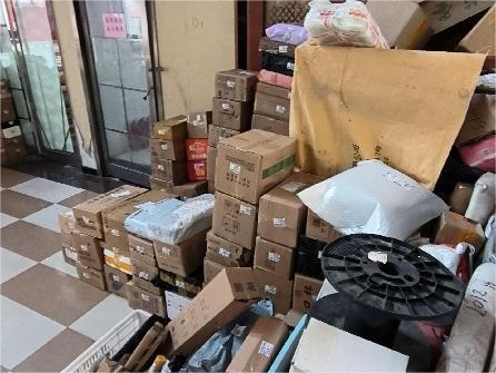 圖為社區快遞驛站內部分快遞包裝 楊宇明 攝