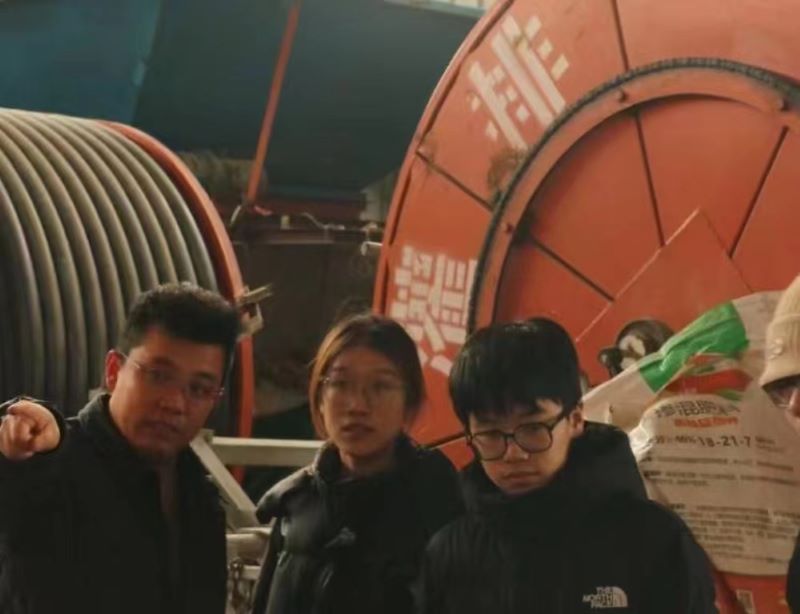 圖為實踐隊在參觀糧視界(壽光)糧食專業合作社與訪談人員交流
