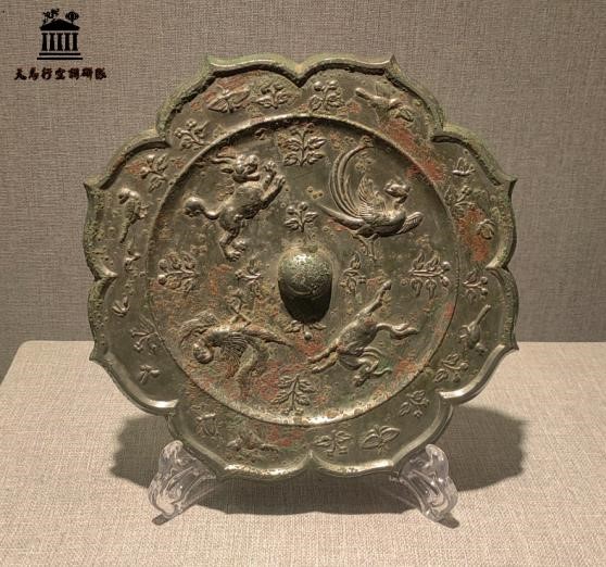 在李負責(zé)人的安排下,本團隊跟隨講解員重點參觀武則天特展與河洛文明展,關(guān)注探尋中國古代神話在文物上的體現(xiàn)。如這件菱形瑞獸銅鏡,上有貔貅、鳳凰、麒麟等瑞獸。瑞,即吉祥,獸,緣起于上古神話和圖騰崇拜。瑞獸出現(xiàn)于神話傳說中,是中華民族上古時期的圖騰崇拜的體現(xiàn),承載著中國傳統(tǒng)思想里的美好寄托。線上關(guān)于《山海經(jīng)》中鳳凰、龍等傳統(tǒng)意象在外譯中的轉(zhuǎn)化以及外國人對此的理解。線上與線下相結(jié)合,使團隊更為全面地探索中國神話潛藏于故事之下的底層邏輯與價值追求,以及神話對外傳播所面臨的文化差異,以及更被外國人所熟知、接受的精神內(nèi)核。