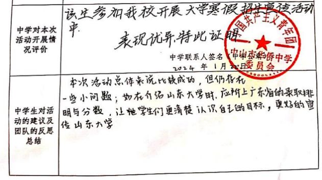此次代表山東大學,回到高中母校,進行有關山東大學招生的宣傳,本人覺得很是光榮和驕傲。在宣講的同時,我也認識了許多優秀努力學弟學妹,讓我不禁回憶起高中充滿緊張但充實的三年。與以前的老師和同天回學校的同學進行交流,也無形之中增進了我們之間的感情。這次活動,不僅幫助了學弟學妹們,我自己也在與他們的相處中受益匪淺。