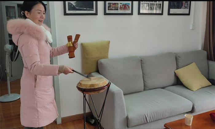 陳君老師現(xiàn)場(chǎng)演示湖北大鼓 實(shí)踐團(tuán)成員 楊思宇 供圖
