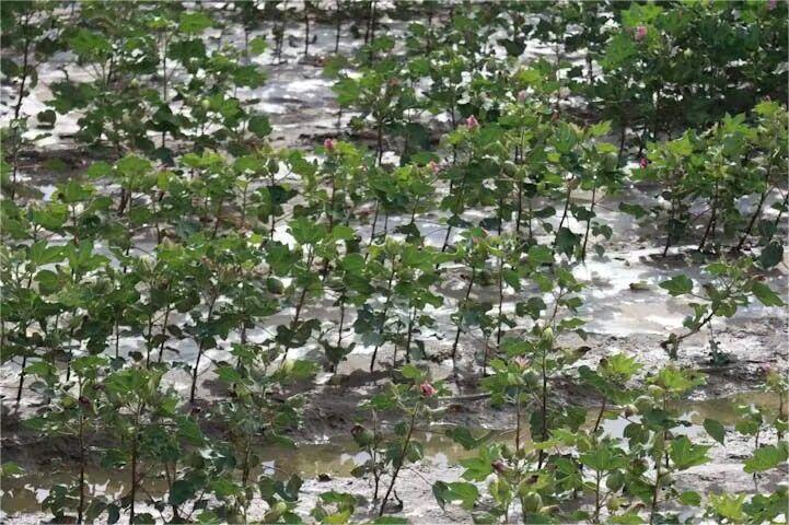 在十一連農戶張福生的帶領下星火實踐小隊來到了56號棉花地,張福生指向一片萎黃的棉花談到:今年雨水特別多,尤其是昨天也下了大雨,許多棉花地都被水淹了,所以長勢不好。隊長聶磊問到正常的年份的畝產時,張福生說:平常一畝地有500多公斤的產量。今年由于前期的滴灌措施沒有做好以及雨水較往年增多,減產是肯定的。