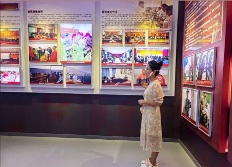 展廳主要包括和泰新區巨變、黨建統領聚力、產業發展強基、文化強根鑄魂和團結之花綻放五個部分。講解員引領團隊成員們穿梭其間,細述展品背后的故事,觸動心靈的敘述讓每個人沉浸其中。團隊成員們凝神傾聽,駐足細賞,不時發出由衷的贊嘆,熱切交流著各自的感受,共同體驗著民族團結進步事業的輝煌成就。“兵團人奮發向上、一往無前,敢為人先,敢于勝利、永不滿足、永不懈怠、永不停滯的時代風貌,是兵團事業永葆生機的動力源泉。”這些內容激勵著團隊成員傳承兵團精神,堅定共筑民族情誼的信念,增強推動各民族繁榮發展的決心。
