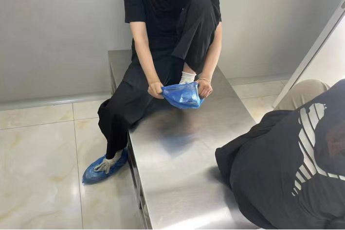 該公司主要以檢測服務為主,影響著養殖業的發展,關乎老百姓的“菜籃子”,餐桌上畜牧產品的安全,因此對實驗室的把控十分嚴格,在進入實驗室之前,成員們做足了充分準備,穿上鞋套,換好實驗服,全方位滅菌,方才開始進行實驗室的參觀。