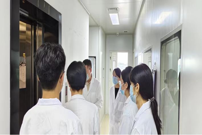 科技與生命交匯,疾病與健康分界。在對公司進行初步探索后,實踐團有幸在杰出校友,現任公司總經理李平曉學長的帶領下來到了檢測區。經過一番防護裝備的穿戴,李學長以一步一解說的方式,為實踐團的成員們分別講解了分子生物學檢測區和血清學檢測區。此次參觀讓成員們深刻體會到檢測的嚴謹性與權威性不僅是公司文化的基石,更是科學精神的體現。從踏入檢測區域前的周密準備,到實驗室內部精妙的結構布局與尖端儀器設備的配置,每一個細節都彰顯出對精準與安全的極致追求。
