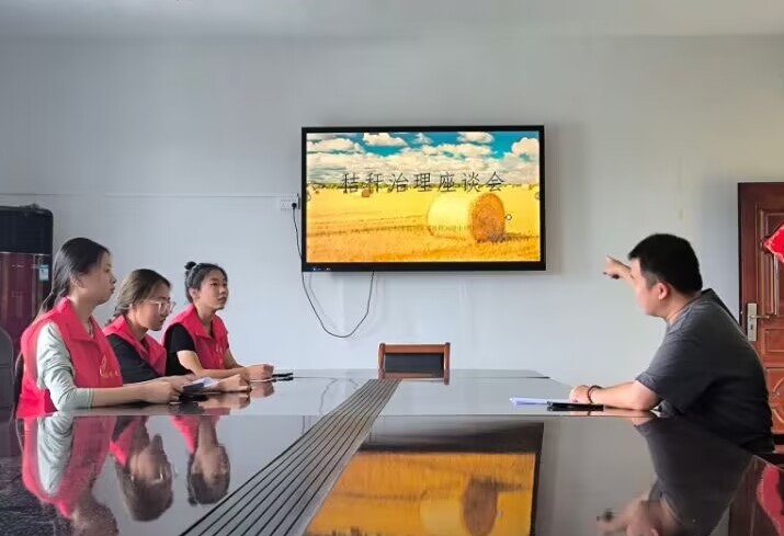 2024年7月8日,實踐隊員聯系了胡集鎮政府人員進行秸稈治理座談會。通過座談會與政府人員的交流,我們了解到政府在治理秸稈上還存在問題:群眾對秸稈禁燒和綜合利用的意識有待提升;農耕機械使用率不足導致秸稈還田、打捆離田等措施施行不到位;秸稈綜合利用市場主體缺乏等。政府人員也表示會及時采取措施解決問題。