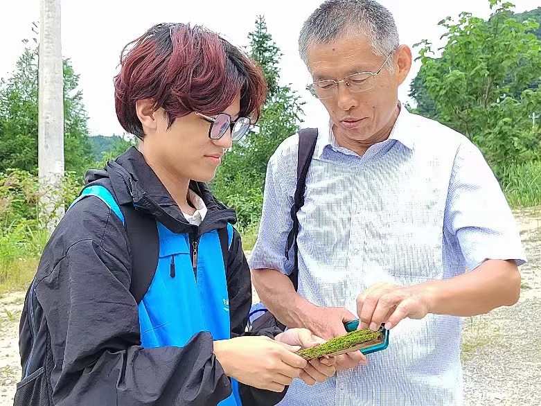 本次活動分為理論學習和實踐探索兩個環節。活動伊始,指導教師為同學們講述了苔蘚植物和蕨類植物的形態結構、生活方式以及生態作用,為實踐團成員提供了充分的理論背景知識。在教師的引導下,實踐團成員對實習過程中的各種苔蘚和蕨類植物進行了觀察:金黃的地衣,蓬松的灰蘚,生機盎然的歐洲蕨等不同的苔蘚和蕨類植物,并記錄其生長環境、顏色、形態等特征。在確保不破壞生態環境的前提下,實踐團成員采集了部分的苔蘚和蕨類植物樣本并做好記錄,為后續的觀察研究奠定基礎。活動最后,實踐團成員紛紛表示,此次活動豐富了自我專業知識,更加明確兩種植物對生態保護的重要性,并將以此為契機,在后續生活中不斷將理論與實踐相結合。此次“河小青,森小綠”生態綠實踐調研活動的順利開展,不僅加深了學生對兩類植物的了解,也讓學生在實踐過程中感受到了自然之美以及生態保護的重要性,有助于培養其科學探究與實踐精神,為生態保護貢獻了青春力量。