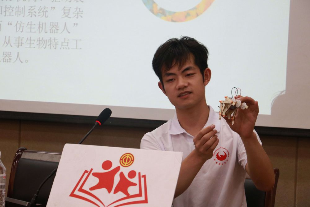 手工練習(xí)結(jié)束后,科學(xué)知識的大門正式打開。在“捷徑思維訓(xùn)練營”的課堂上,22工業(yè)工程1班馮錚塏和22工業(yè)工程1班華美風(fēng)引導(dǎo)孩子們利用模型材料,親手制作屬于自己的“爬蟲”機(jī)器人。孩子們在動手實(shí)踐中鍛煉了自己的動手能力與思維能力,讓孩子們感受到了科技的神奇力量。當(dāng)“爬蟲”機(jī)器人在桌面上動起來是,孩子們的驚訝與喜悅充滿了整個教室。