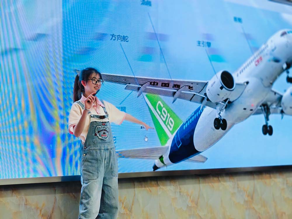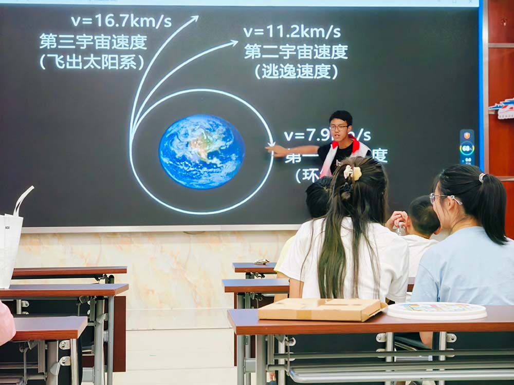 與此同時,志愿者們特別設置了民航知識普及環節,用通俗易懂的語言介紹了民航客機的發展歷程、機場運營、空中交通管制等基礎知識。其中,志愿者詳細介紹了由我校友吳光輝先生擔任總設計師的中國首款按照最新國際適航標準研制的干線民用飛機——C919。孩子們聽得津津有味,不時提出自己的疑問,志愿者們則耐心解答,現場氛圍溫馨而熱烈。