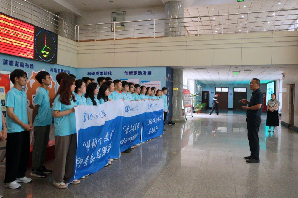 在出征儀式上,黨委副書記宋艷兵發表了動員講話。他提出四點要求:第一,安全是第一要務,同學們必須高度重視個人的安全,在實踐中具備擔當意識、集體意識和安全意識,嚴守遵守紀律,服從指揮;第二,要提升創新能力,在各高校和研究所的訪問中學習先進技術和創新精神,提升自身才干;第三,努力做好每件事,為所訪問的學校和機構留下良好的印象,展示河師大的形象;第四,在志愿服務活動中提升自我能力,將理論與實踐相結合,在社會實踐中堅定理想信念。他勉勵拔尖班的同學們要強化學習能力,努力成為校際友好交流的橋梁,并衷心祝愿團隊成員高效地完成此次實踐活動,在實踐中取得成長。