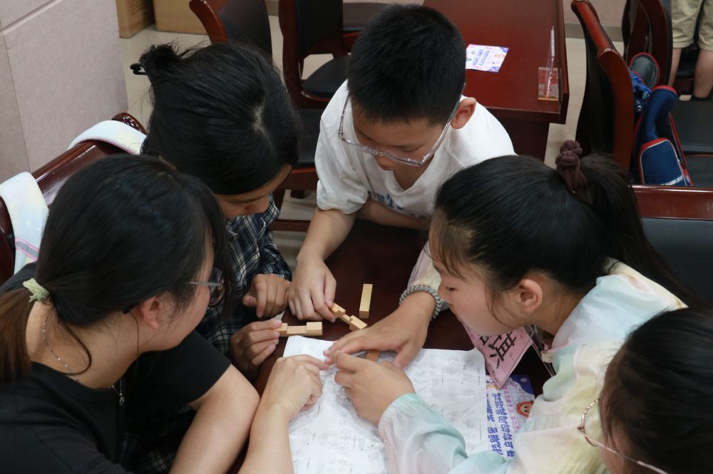 圖為助教老師和孩子們一起根據圖紙研究魯班鎖。通訊員 谷樂 攝通過這堂非遺傳承課程,寧波財經學院攜手紅領“菁”實踐團為孩子們帶來了一次難忘的沉浸式體驗。孩子們在角色扮演中學習非遺知識,在闖關中體驗非遺技藝,在沉浸式學習中感受非遺文化的獨特魅力。