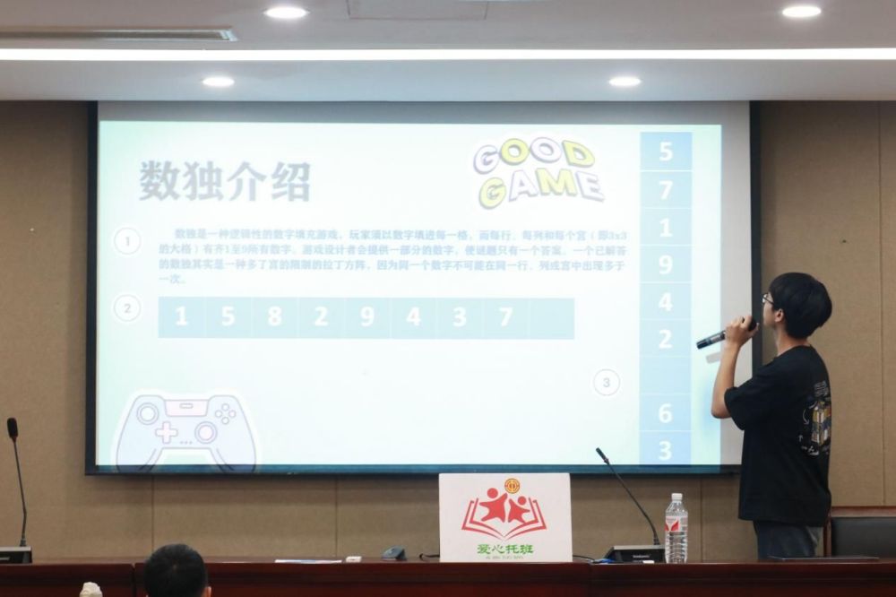 圖為志愿者在給小朋友們交數(shù)獨(dú)。通訊員 李嫣然 攝