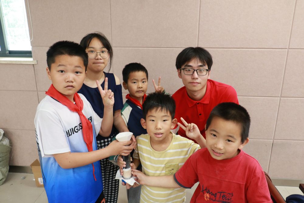 圖為助教和孩子們一起制作的凈水過(guò)濾器合影。通訊員 谷樂(lè) 攝