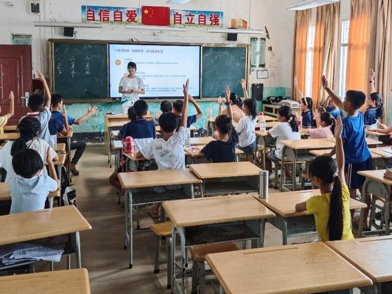 數(shù)學課課外拓展:思維的樂園在“三下鄉(xiāng)”活動的數(shù)學課堂上,羅子欣老師以其獨特的魅力和深厚的專業(yè)素養(yǎng),為林屋小學的學生們帶來了一場數(shù)學知識的盛宴。她巧妙地運用實物演示、故事講述和互動游戲等多種教學方法,將枯燥的數(shù)學公式和定理轉化為生動有趣的實例,讓孩子們在輕松愉快的氛圍中主動探索、積極思考。羅老師不僅注重知識的傳授,更關注孩子們的思維訓練和問題解決能力的培養(yǎng),鼓勵他們勇敢提問、敢于質(zhì)疑,激發(fā)了他們對數(shù)學世界的好奇心和探索欲。整堂課下來,孩子們不僅收獲了知識,更學會了如何運用數(shù)學眼光觀察世界、用數(shù)學思維解決問題,為他們的成長之路鋪設了堅實的基石。