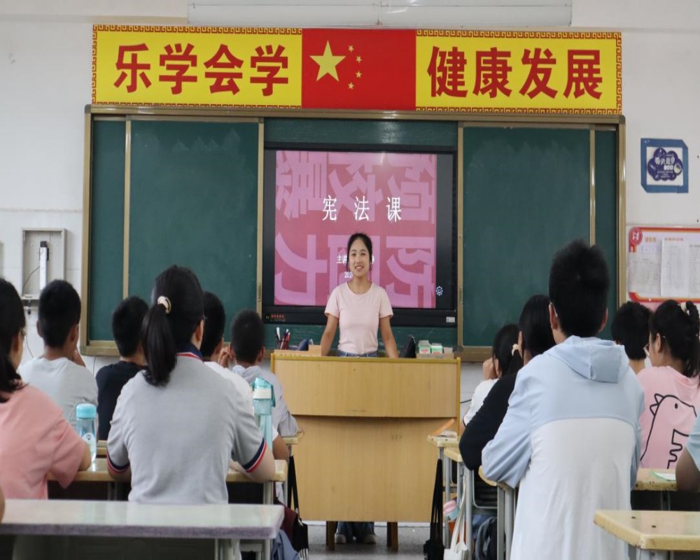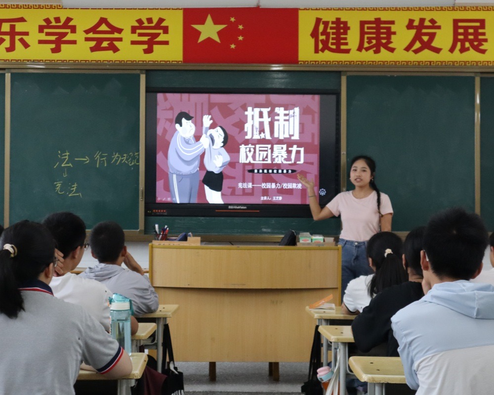 最后,志愿者帶領學生們進行宣誓。學生們通過這次課程對憲法和法律有了更深刻的理解,也學會了如何在面對校園暴力時保護自己和他人。志愿者也在課堂互動中加深了對法律與校園霸凌的感悟,決心更好地去守護他人,傳遞平等與關懷。