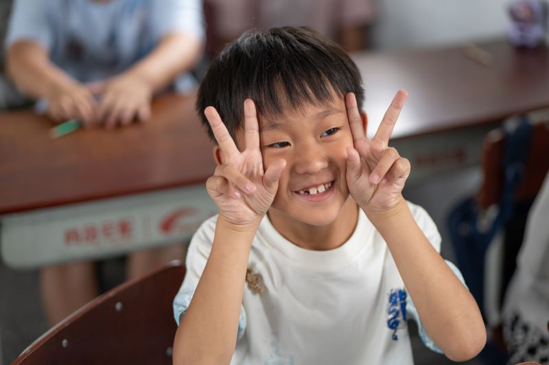 課堂上,支教團成員介紹了基本情緒識別方法,通過情緒信號燈讓學(xué)生認(rèn)識到觀察并尊重他人需要的心理距離。然后,支教團成員鼓勵同學(xué)們多向身邊同學(xué)展示正向情緒,構(gòu)建和諧人際關(guān)系。最后,支教團成員與全體一年級學(xué)生共同完成了“優(yōu)點大轟炸”展示板塊,身心健康主題的第一節(jié)課圓滿結(jié)束。